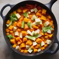 Ajoutez le butternut, les carottes, le céleri, le poireau et le céleri-rave dans la casserole.