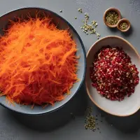 Égrenez la grenade et grillez légèrement les amandes et les graines de tournesol.Étape 3