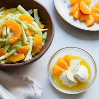 Pelez l’orange et détaillez la en quartier, ajoutez la à la préparation fenouil, salade.Étape 3