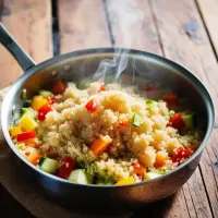 Ajoutez le quinoa, réduisez le feu et laissez mijoter à couvert pendant environ 15 minutes, jusqu'à ce que le quinoa soit cuit et ait absorbé tout le liquide.Étape 2