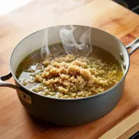 Dans une casserole, portez le bouillon de légumes à ébullition.