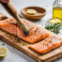 Badigeonnez les filets de saumon avec l'huile d'olive et assaisonnez avec du sel, du poivre et l'ail émincé.Étape 5