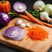 Émincez le chou, le poivron, épluchez et émincez l'oignon et la carotte.