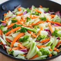 Incorporez le chou émincé et faites sauter pendant encore 5 minutes.Étape 4