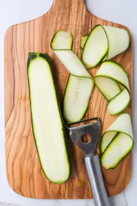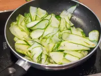 Lavez et coupez les courgettes en lamelles assez fines et larges.Étape 2